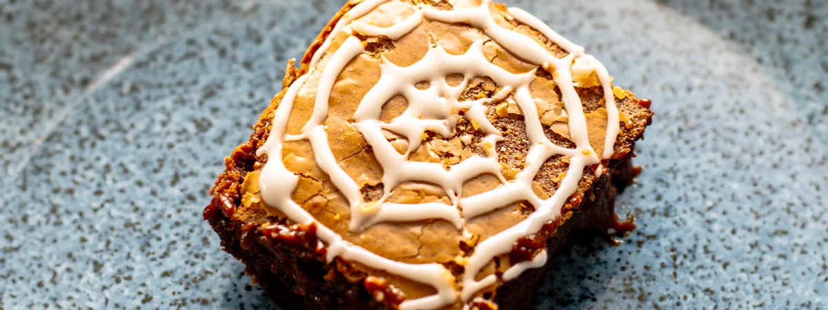 Halloween ja hämähäkinseitti kuuluu yhteen! 🕸️ Nämä helpot browniet loihdit nopeasti juhliin. Reseptistä riittää 6-8 hengelle.