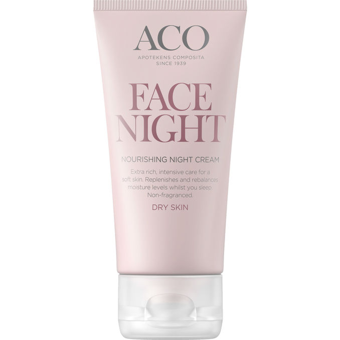 Erittäin täyteläinen ja hoitava Aco yövoide, joka palauttaa ihon kosteustasapainon.