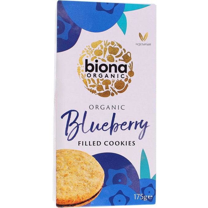 Herkullisen rapeat luomukeksit makean mustikkaisella täytteellä.