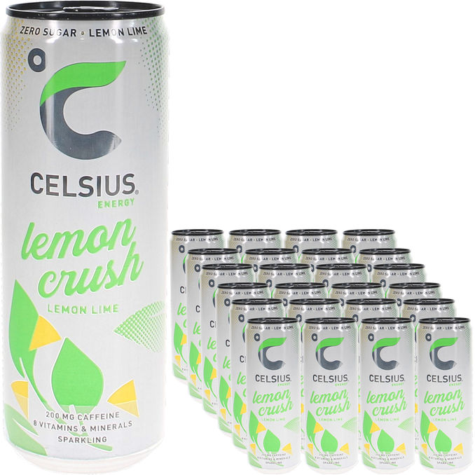 Celsius Lemon Crush ilahduttaa raikkaalla sitruunan ja limen maulla sekä ainutlaatuisella yhdistelmällä piristäviä ainesosia ja vitamiineja. Kofeiinin ohella Celsius sisältää mm. vihreää teetä, inkivääriuutetta ja guaranaa sekä monipuolisen kattauksen vitamiineja, jotka tuottavat tervetulleen tujauksen lisää virtaa, kun sitä tarvitaan, ja auttavat saamaan parhaan tehon irti päivän aktiviteeteista. Lemon Crush on täysin sokeriton ja vegaaninen, kuten Celsiuksen kuuluukin.