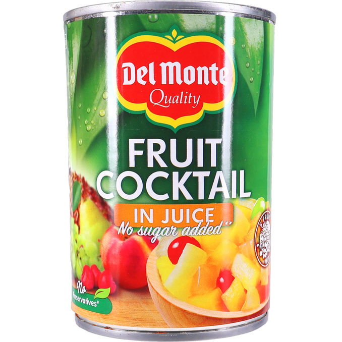 Hedelmiä vaihtelevassa suhteessa (persikka, päärynä, ananas, viinirypäle, kirsikat).
