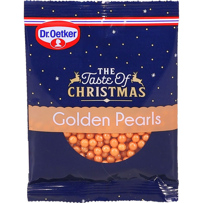 Pehmeät kultahelmet ovat valikoiman tyylikkäimpiä koristeita. Himmeän kullanväriset helmet sopivat erityisesti suklaisten kakkujen koristeeksi.