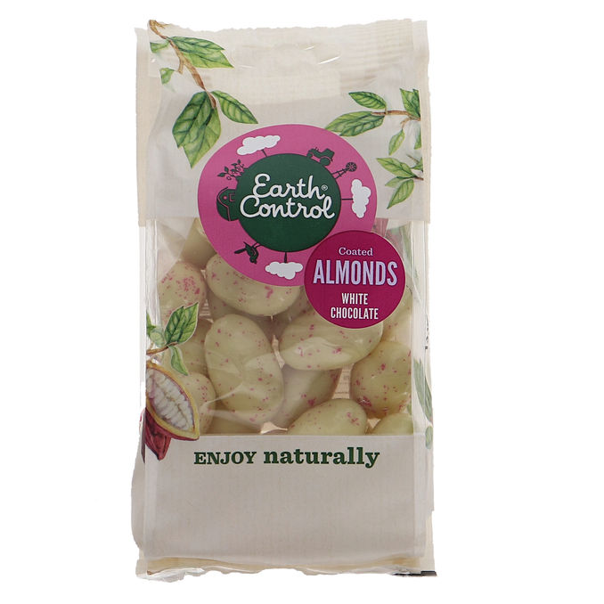 Valkosuklaalla päällystetyt mantelit.