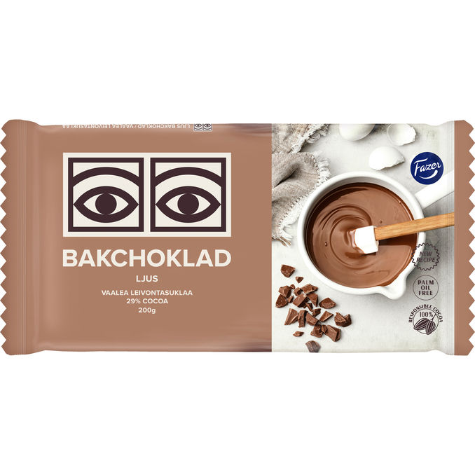 Fazer vaalea leivontasuklaa on täyteläinen maitosuklaa, joka on suunniteltu erityisesti leivontaan ja jälkiruokiin. Se sulaa helposti ja antaa pehmeän suklaisen maun kakkuihin, kuorrutteisiin ja muihin herkkuihin. Palmuöljytön resepti takaa korkean laadun, ja tuote sopii erinomaisesti niin kotileipureille kuin vaativampaankin käyttöön.
