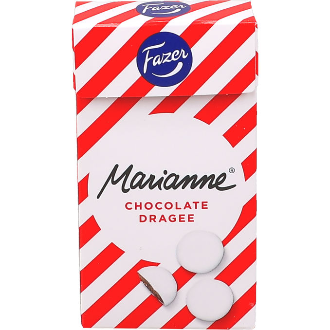 Marianne Chocolate Dragee 38g -rasia sisältää herkullisen yhdistelmän rapeaa piparminttukuorta ja täyteläistä tummaa suklaata. Kätevästi pastilliaskiin pakatut suklaarakeet ovat täydellisiä naposteluun. Nauti klassisesta Marianne-mausta uudella tavalla!