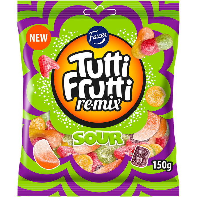 Tutti Frutti Remix Sour on sekoitus hedelmäisiä, kirpeitä herkkuja. Täydellinen pussi itsesi hemmotteluun tai jaettavaksi ystävien ja perheen kanssa.