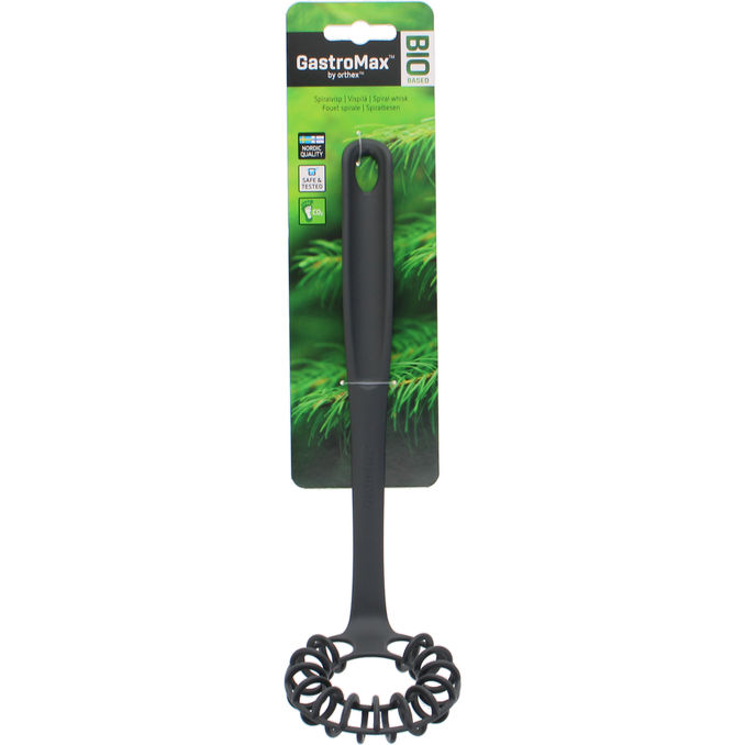 Spiraalivispilä ulottuu kulhon tai kattilan nurkkiin saakka. Ei naarmuta pinnoitettuja kattiloita ja pannuja. Materiaali sisältää biopohjaista muovia, lasikuitua ja polyamidia. Vispilän hiilijalanjälki on pienempi verrattuna perinteisestä muovista valmistettuun vastaavaan tuotteeseen.