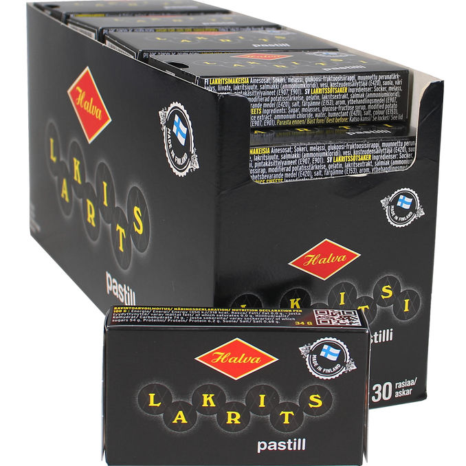 Maukkaita lakritsipastilleja hienossa, klassisessa pakkauksessa. Sisältää 30 kpl.
