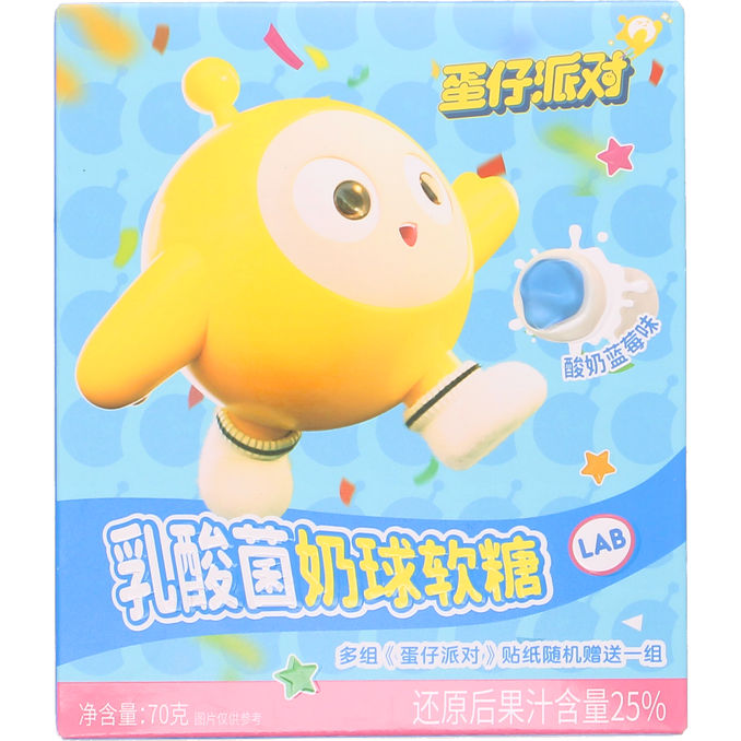 Koe leikkisä makuelämys! Nämä pehmeät karkkipallot yhdistävät täyteläisen jogurtin ja 25 % mustikkamehun täydelliseksi kokonaisuudeksi. Ainutlaatuinen ja makea pieni suupala 70 g pakkauksessa.