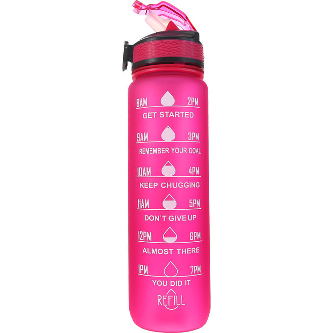 Motivoiva vesipullo tekee veden juomisesta nautinnollisempaa koko päivän. Tähän huippuluokan pulloon mahtuu litra nestettä ja siinä on älykäs merkki, jonka avulla on helppo seurata päivittäistä nesteen saantia. Lisäksi pullo on konepesun kestävä 100 asteeseen asti - mutta värinsä säilyttämiseksi suositellaan käsinpesua.