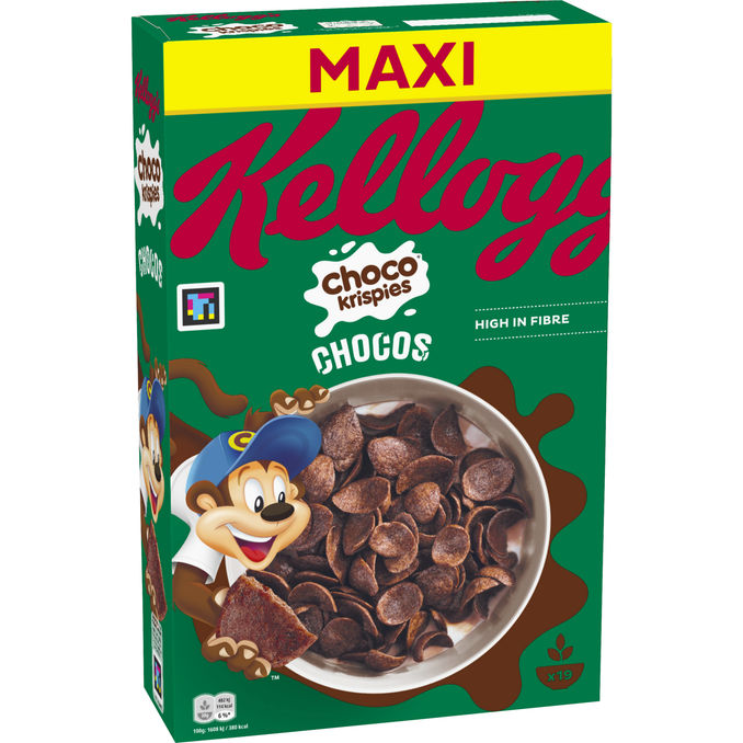 Kellogg's Choco Krispies Chocos Maxi on suklaiset, runsaasti kuitua sisältävät aamiaismurot, jotka tuovat iloa jokaiseen aamuun. Tuote sopii myös vegaaniseen ruokavalioon.