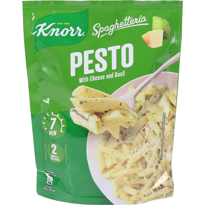 Knorr Spaghetteria Pesto on herkullinen pastaruoka, josta valmistuu helposti ja nopeasti maukas lounas tai päivällinen. Valmistus käy käden käänteessä ja vie vain 7 minuuttia!