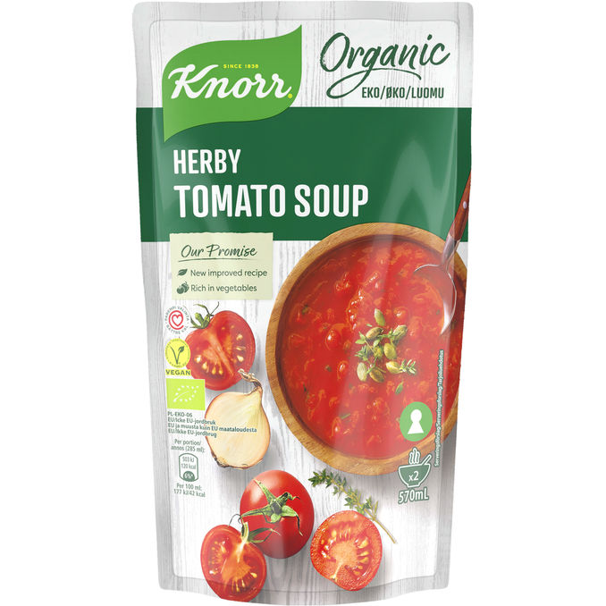 Knorr luomu tomaattikeitto yrteillä on nopea ja helppo valmistaa ja täydellinen lounas tai illallinen kahdelle.