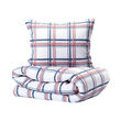 Klassinen vuodevaatesetti 100-prosenttista puuvillaa ajattomalla punasinisellä ruutukuviolla. Setti sisältää pussilakanan koossa 150x210 cm ja tyynyliinan koossa 50x60 cm.