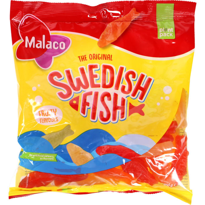 Klassiset ruotsalaiset Malacon makeiskalat.