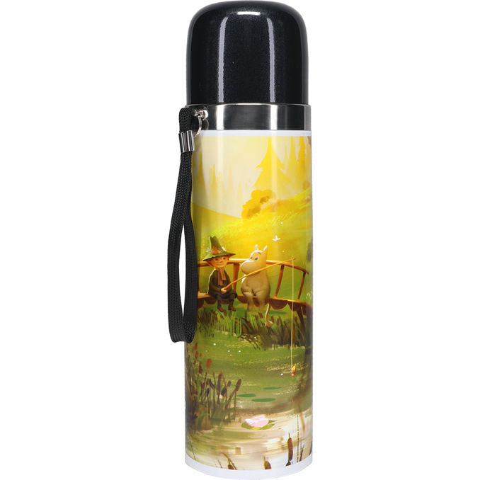 Tunnelmallinen Muumi-aiheinen termospullo, jossa Muumipeikko ja Nuuskamuikkunen seikkailevat luonnossa. Pitää juoman lämpimänä tai kylmänä pitkään ja on täydellinen valinta retkille, kouluun tai arjen menoihin.