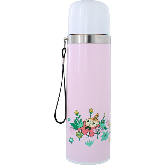 Ruostumattomasta teräksestä valmistettu termospullo hurmaavalla vaaleanpunaisella Muumi-kuviolla. Pitää juoman lämpimänä tai kylmänä pidempään, täydellinen otettavaksi mukaan kouluun, töihin tai retkelle. Tilavuus 0,5 l.