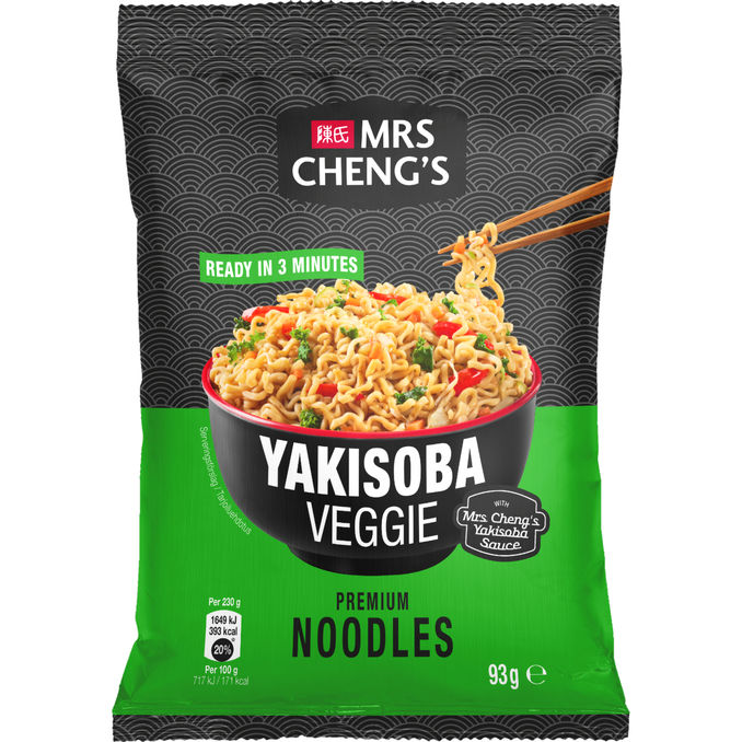 "Mrs Cheng's Yakisoba kasvispikanuudeli yhdistää ensiluokkaisen laadun ja aidot aasialaiset maut. Maukas ateria on helppo ja nopea valmistaa 3 minuutissa. Kaada kiehuvaa vettä pussista otettujen nuudelien ja vihannesten päälle, minkä jälkeen odota kolme minuuttia. Valuta vesi pois ja lisää Mrs Cheng's kastike nuudelien päälle koko ajan sekoittaen. Kun vesi on kaadettu pois, sekoittuu nestemäinen Yakisoba-kastike tasaisesti antaen nuudeleille täyteläisen maun. Valmis ateriakokonaisuus on helppo syödä siististi ilman roiskeita.