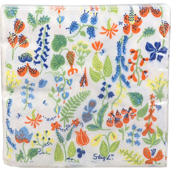 Kauniit paperiservetit, koko 33x33 cm, ovat täydelliset tuomaan kattaukseen väriä ja vivahteita. Kuosina on klassinen "Herbarium" vaalealla taustalla, tunnetun ruotsalaisen muotoilijan Stig Lindbergin suunnittelema.