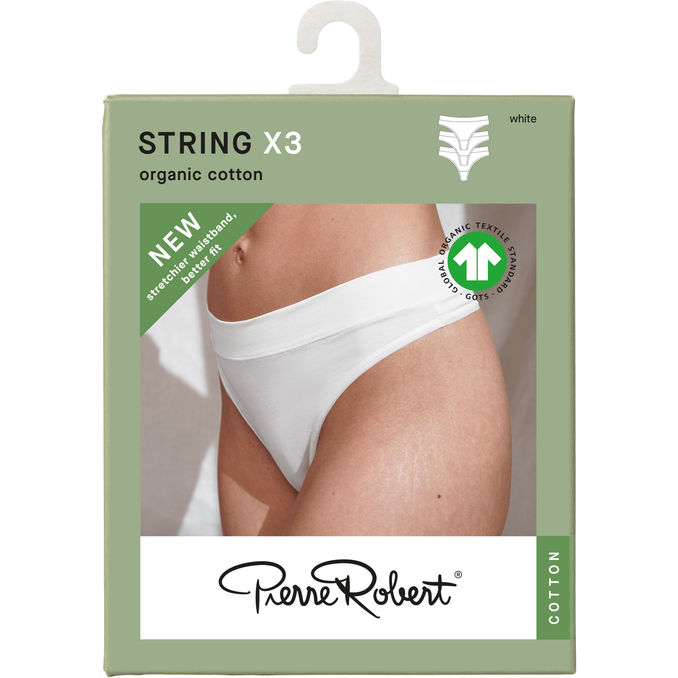 Luomupuuvillasta valmistetut mukavat string-alushousut, jotka istuvat hyvin ja joustavat sopivasti. Sisältää 3 kpl. Koko: L.