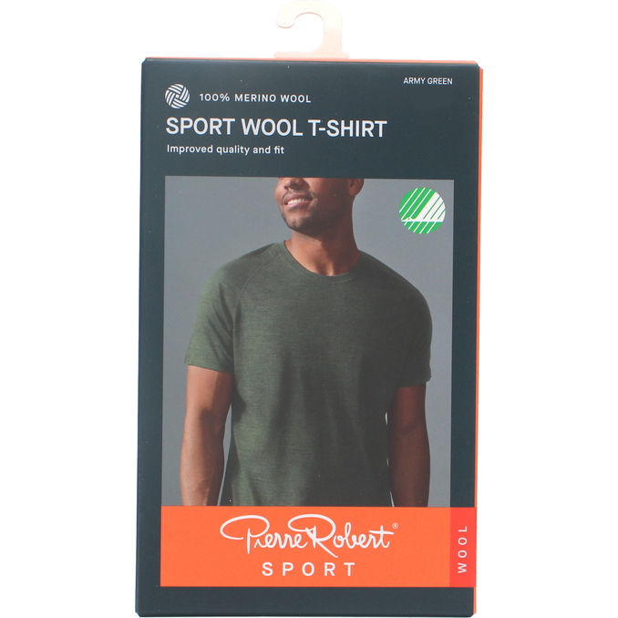 Miesten armeijanvihreä 100% merinovillainen T-paita . Koko L.