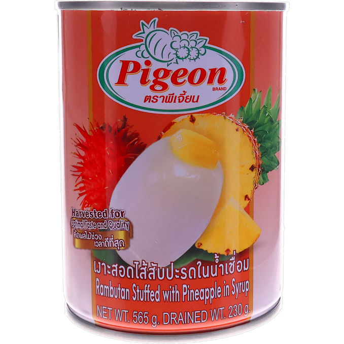 Pigeon Rambutaani sokeriliemessä on eksoottinen herkkua, jossa mehukkaat rambutaanit on täytetty raikkailla ananaspaloilla. Sopii täydellisesti sellaisenaan makeaksi jälkiruoaksi tai trooppiseksi lisäksi hedelmäsalaatteihin.