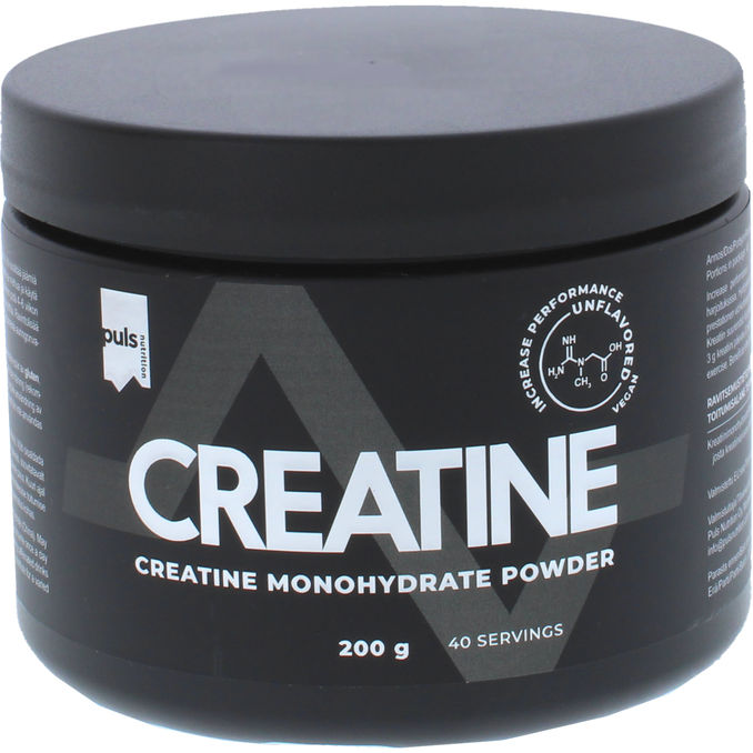 Puls kreatiini koostuu puhtaasta 100 % kreatiinimonohydraatista. Käytetään kuuriluontoisesti lihasten kasvun maksimointiin.
