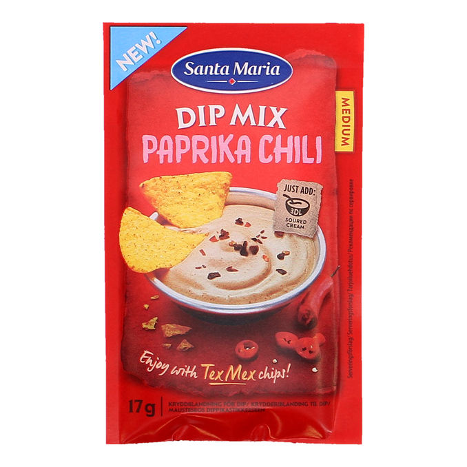 Mausteseos, josta valmistat paprikan ja chilin makuisen dippikastikkeen. Täydellinen perheen taco-illallisille ja juhliin. Sekoita pussin sisältö noin 3 dl:an kermaviiliä ja anna maustua hetki parhaan tuloksen saavuttamiseksi. Kokeile tätä dippisekoitusta Santa Maria Tex Mex Tortillasipisien kanssa tai tarjoile kastikkeena tacoille ja muille Tex Mex -ruoille.