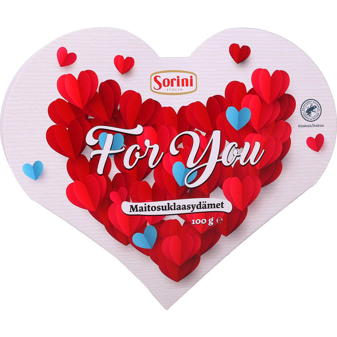 Herkulliset kääreelliset suklaasydämet kauniissa rasiassa sopivat sekä arkeen että juhlahetkiin. Sydämellinen lahja kertoo saajalle, että hän on sinulle tärkeä.