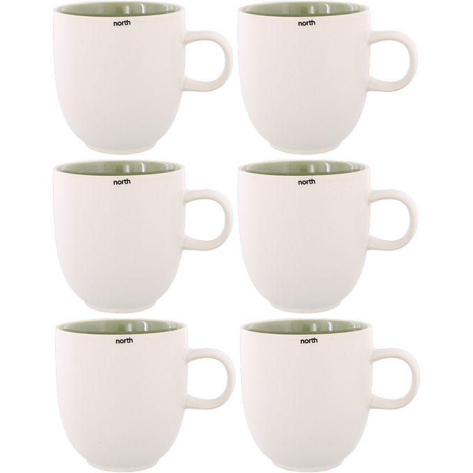 North-sarjan muki on tilavuudeltaan 33 senttilitraa, ja siinä on pyöristetyt muodot sekä reaktiivinen lasite, joka luo eläväisiä, luonnon inspiroimia kuvioita ja uniikkeja vivahteita pintaan. Mattavalkoinen ulkopinta yhdistyy sisäpuolen kiiltävään sammalenvihreään sävyyn.