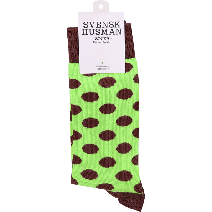 Leikkisät pilkulliset sukat vihreän ja ruskean sävyissä tuovat värikkään yksityiskohdan asuusi. Pehmeästä puuvillasekoitteesta valmistetut sukat istuvat mukavasti ja sopivat täydellisesti jokapäiväiseen käyttöön.