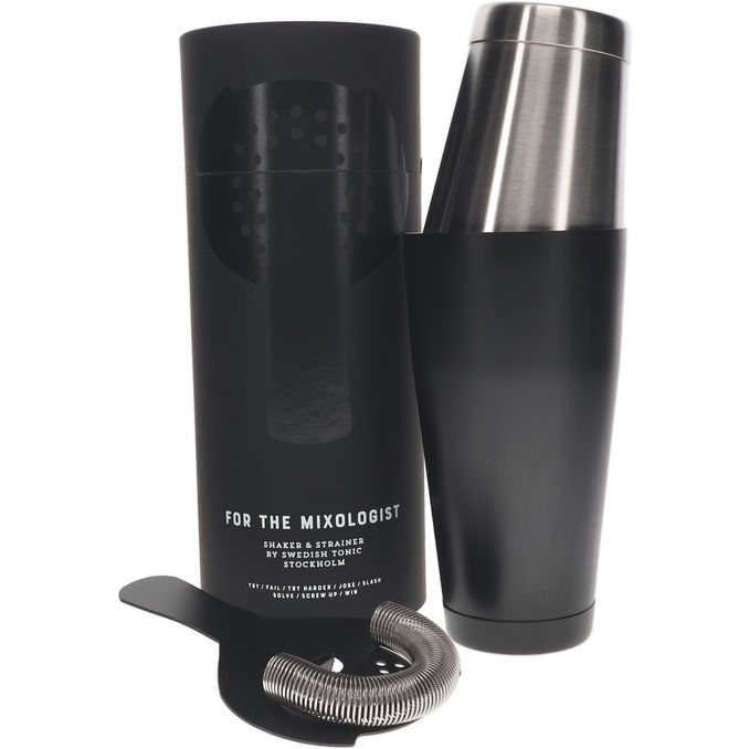 Laadukas Swedish Tonicin coctail shaker. Sisältää shakerin ja coctailsiivilän.