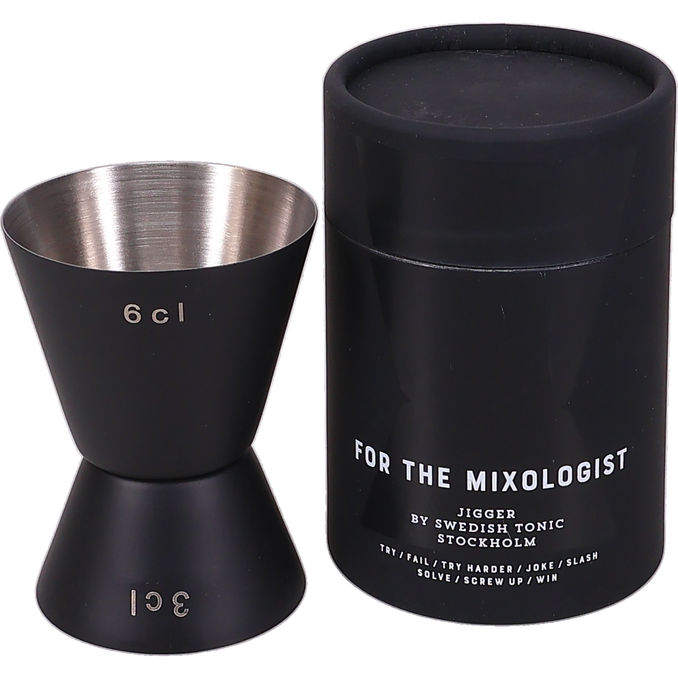 Mittaa drinkkisi tarkasti! Tässä tyylikkäässä mattamustasta teräksestä valmistetussa jiggerissä on kaksoismitat 3 cl ja 6 cl täydellisesti tasapainotettuja cocktaileja varten. Jokaisen mixologin välttämättömyys!