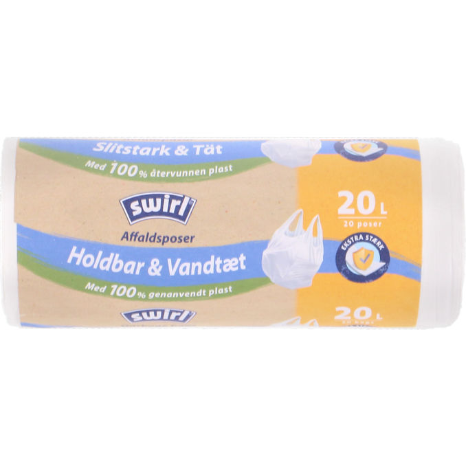 100% kierrätetystä muovista valmistetut 20 L jätesäkit. Sisältää 20 kpl.