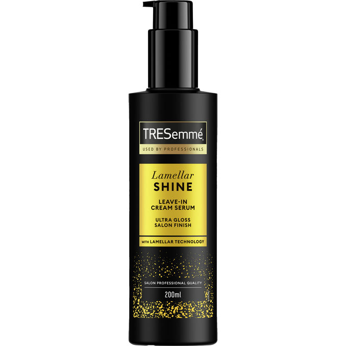Haluatko saada kotona yhtä kiiltävät hiukset kuin kampaamossa? TRESemmé Lamellar Shine Leave-In Cream -seerumi on hiusten hoitoaine, joka hyödyntää lamelliteknologian tehoa. Se imeytyy jokaiseen hiukseen korjaten, silottaen ja selvittäen hiuksiasi ja antaa hiuksille kampaamotasoisen kiillon. Lopputuloksena ovat kiiltävät ja hoidetut hiukset.