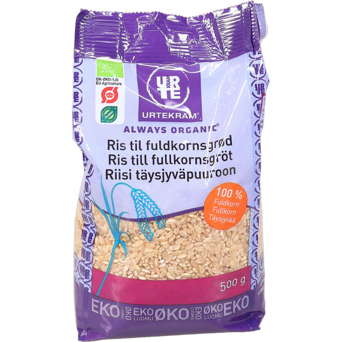Urtekram Luomu Täysjyväpuuroriisistä saat herkullista riisipuuroa täysjyväversiona.