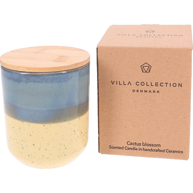 Tyylikäs keraaminen tuoksukynttilä, jossa on sinisen ja beigen sävyinen kaksivärinen muotoilu sekä luonnollinen puukansi, joka antaa lämpimän ja koristeellisen ilmeen. Kaktuksenkukan (cactus blossom) raikas tuoksu luo rauhallisen ja harmonisen tunnelman samalla, kun kynttilä toimii kodin tyylikkäänä yksityiskohtana.