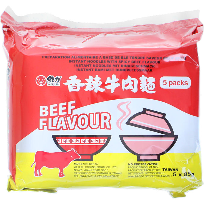 Naudanlihanmakuiset pikanuudelit. Sisältää 5 pussia.